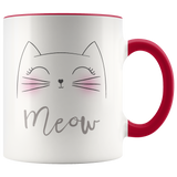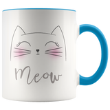 BLUSHING CAT MEOW 11oz Color Accent COFFEE MUG