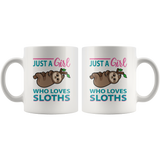 Just a Girl Who Loves SLOTHS 11oz or 15oz COFFEE MUGS