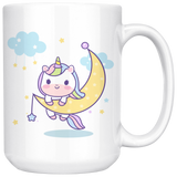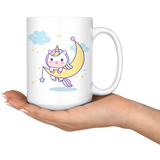 Kawaii Unicorn on Moon, So Cute 11oz or 15oz COFFEE MUG