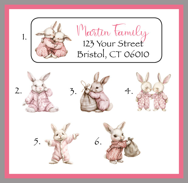 Bunnies in Pink Pajamas Address Labels, 30 Return Address Labels per sheet, Bunny PJs, Personalized, Everyday Labels, Baby Shower