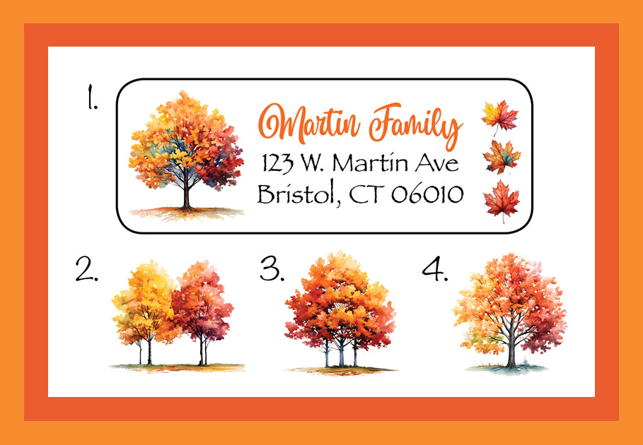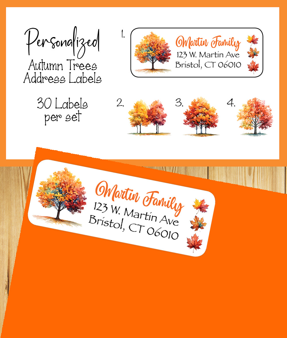 Personalized Autumn Trees Return Address Labels – Fall Foliage Personalized Stickers – Set of 30 – Custom Fall Leaves Mailing Labels