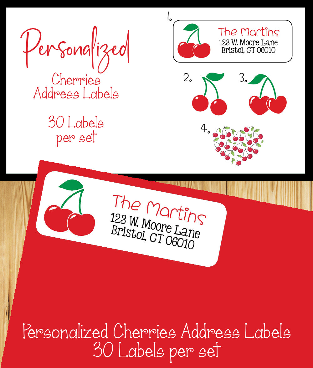 Personalized Cherries Address LABELS, Sets of 30 Address Labels
