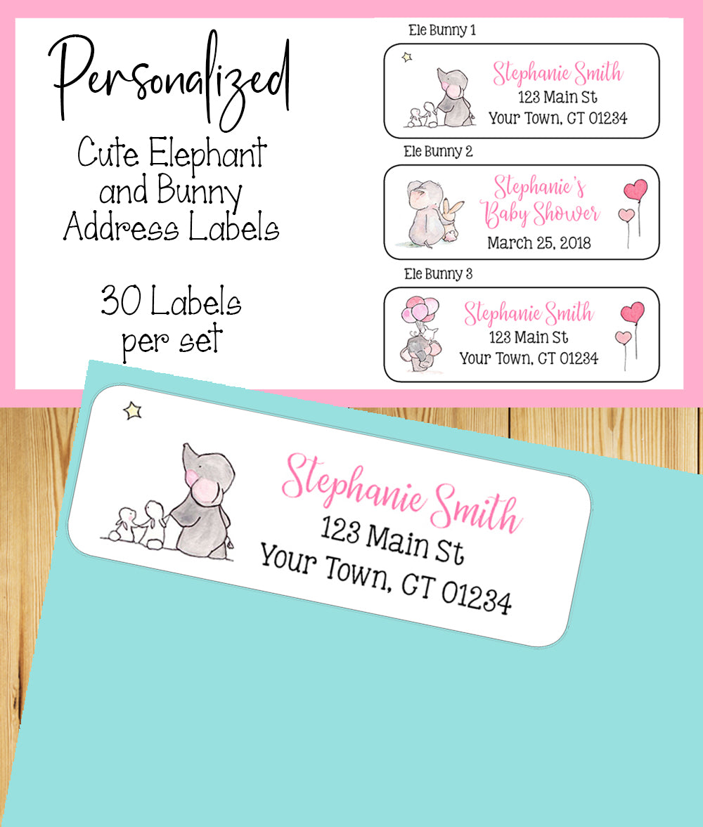 Personalized ELEPHANT and BUNNY Address Labels, Return Address Labels, Love, Great for Baby Shower