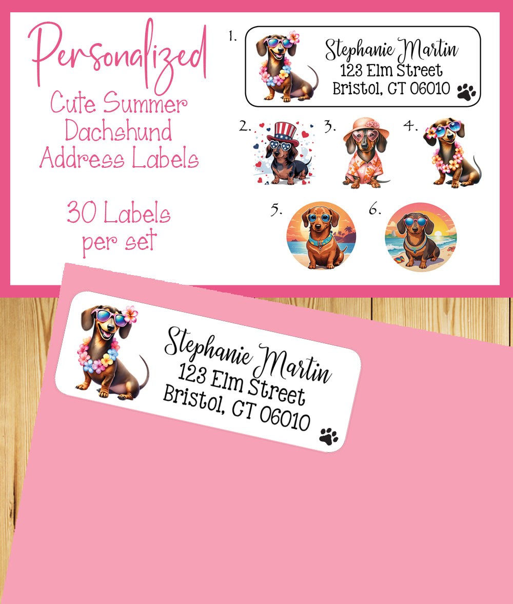 Summer Dachshunds Address Labels, 30 Return Personalized Address Labels per sheet, Doxie