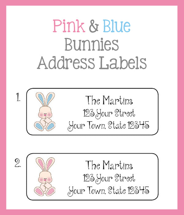 Personalized Adorable Pink and Blue Bunnies Return ADDRESS Labels, Bunny