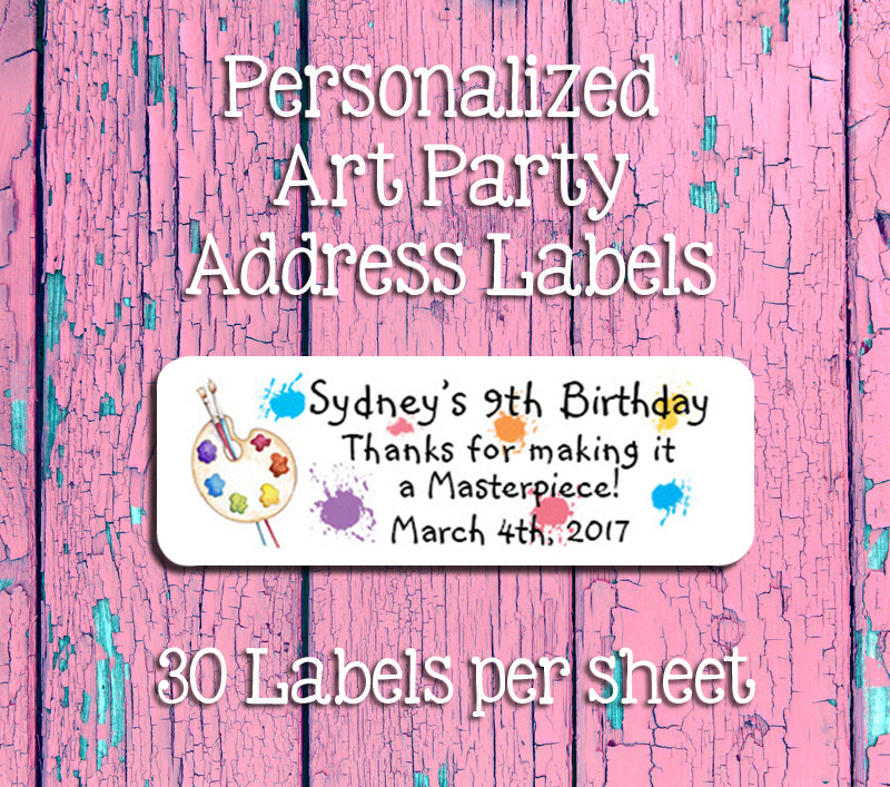 Art Birthday Party Return Address Labels, Personalized