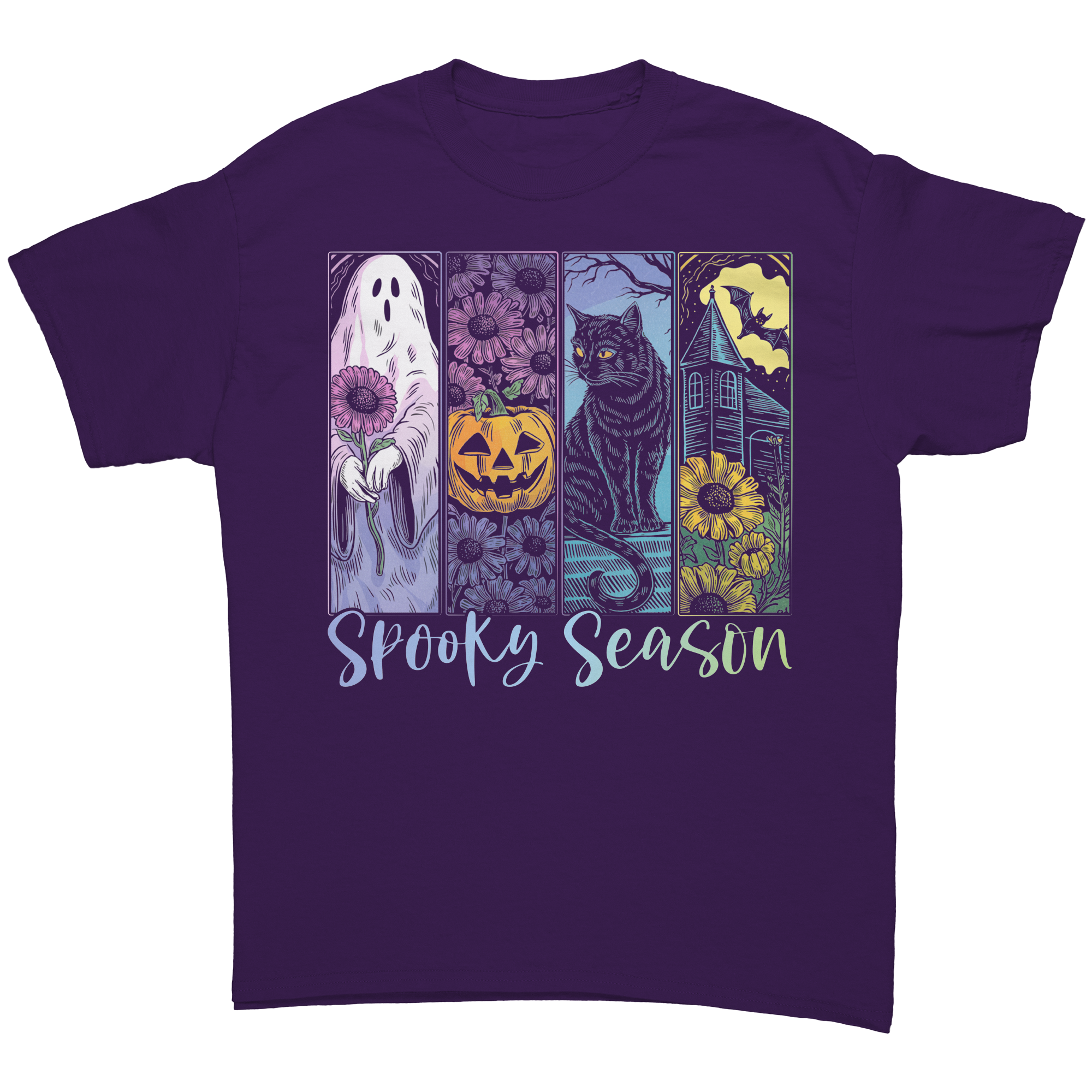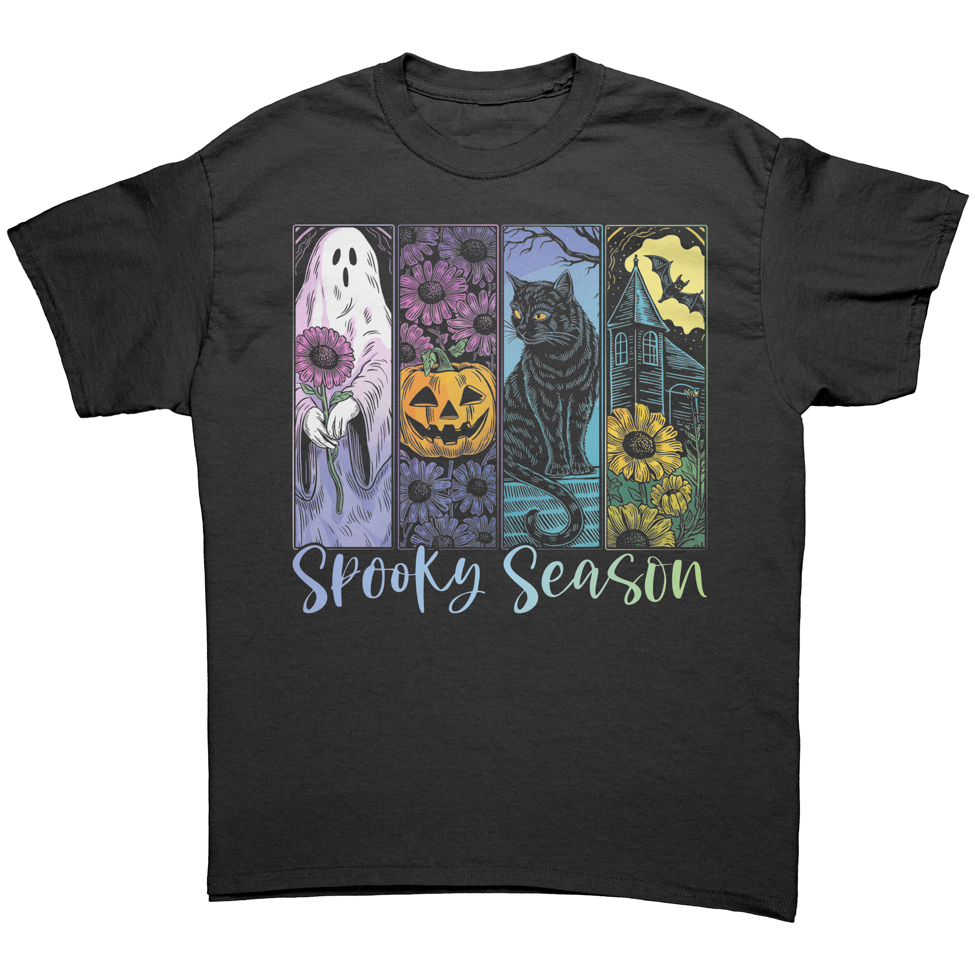 Spooky Season Halloween Unisex T-Shirt, Ghost, Pumpkin, Cat, Gildan Brand