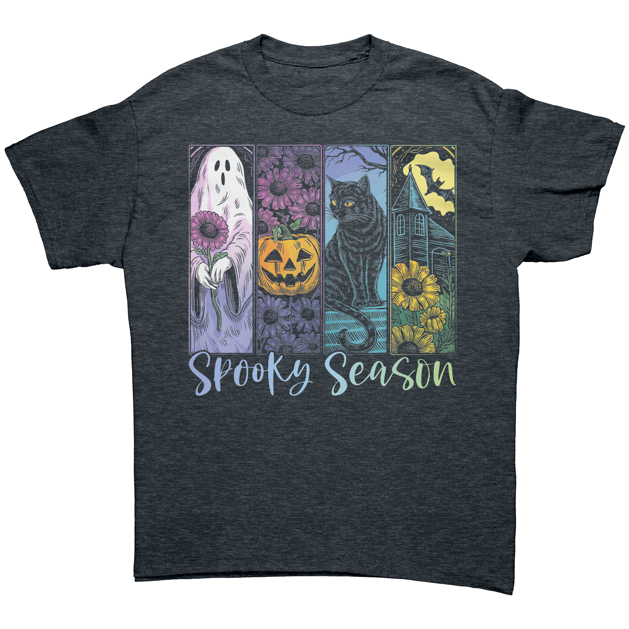 Spooky Season Halloween Unisex T-Shirt, Ghost, Pumpkin, Cat