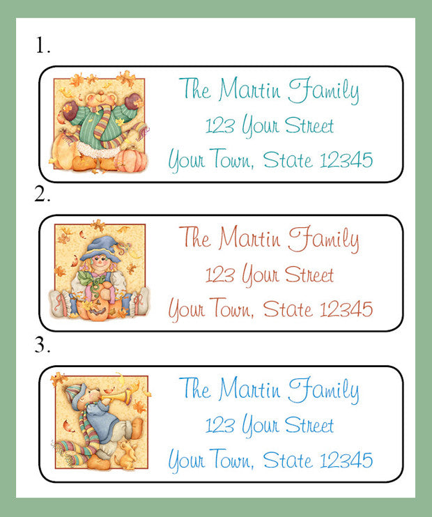 Sets of 30 per page Personalized Autumn Teddy Bear and Scarecrow Design Address Labels