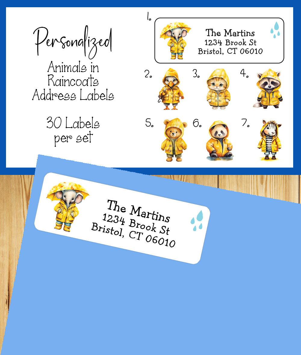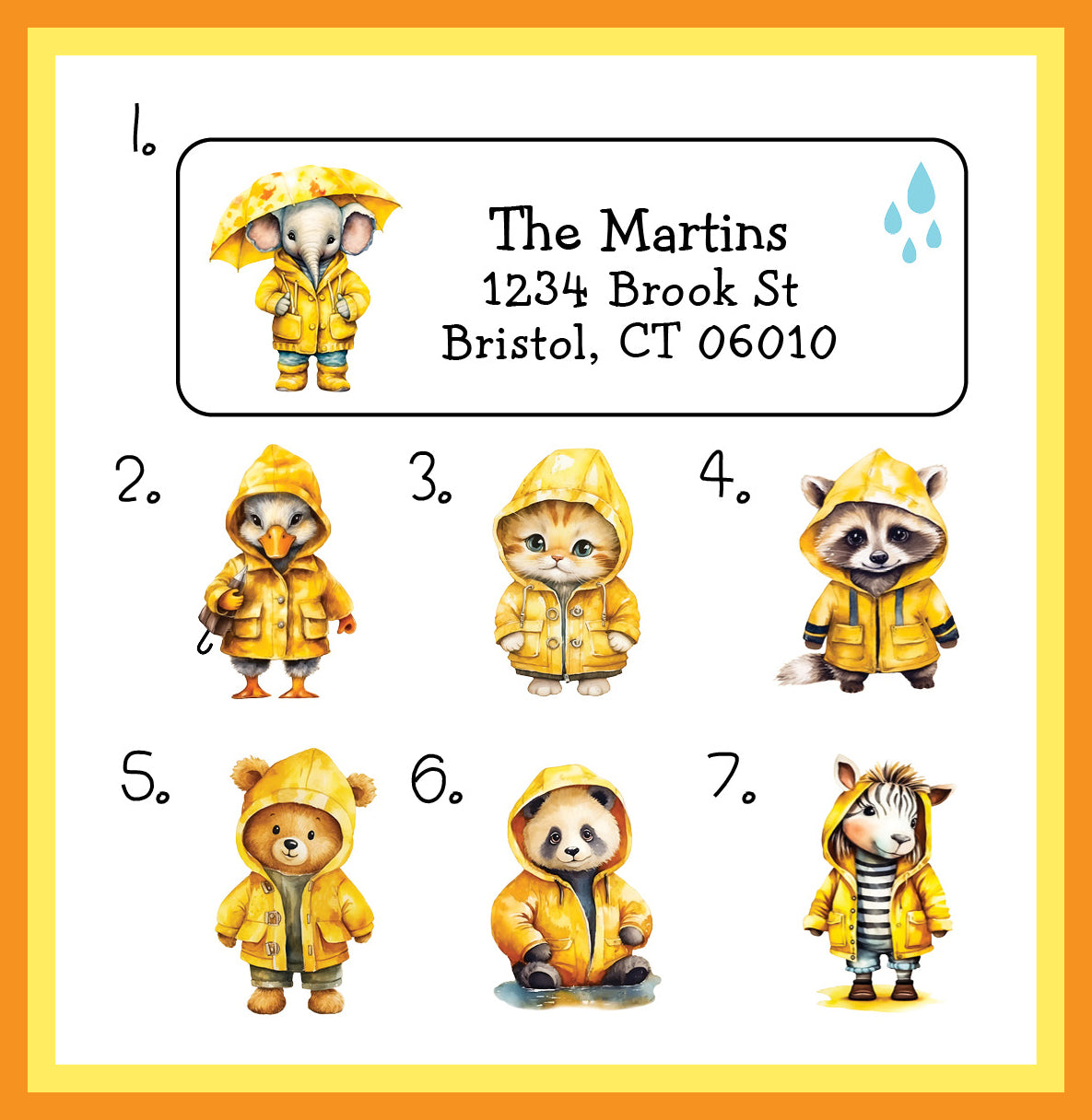 Personalized Animals in Raincoats Return Address Labels, 30 per set