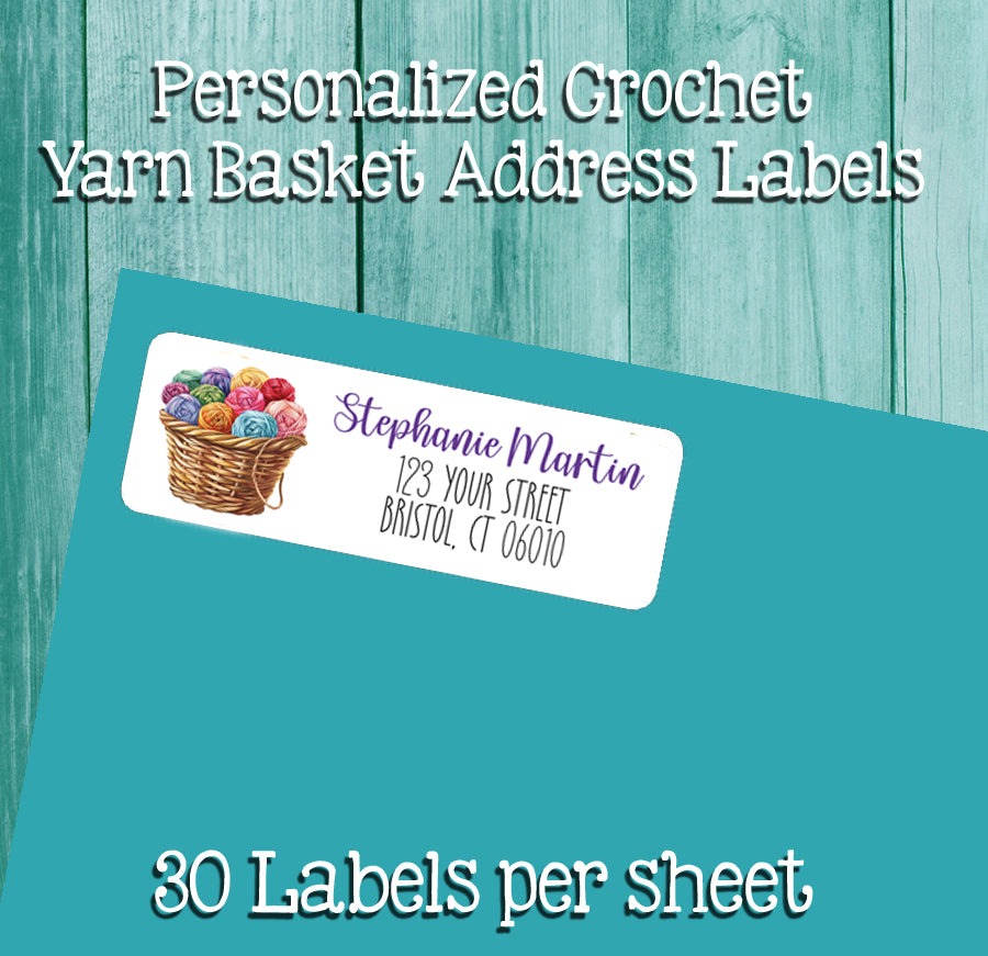 Crochet Yarn Personalized Address Labels Return Address Labels, Sets of 30, Crochet