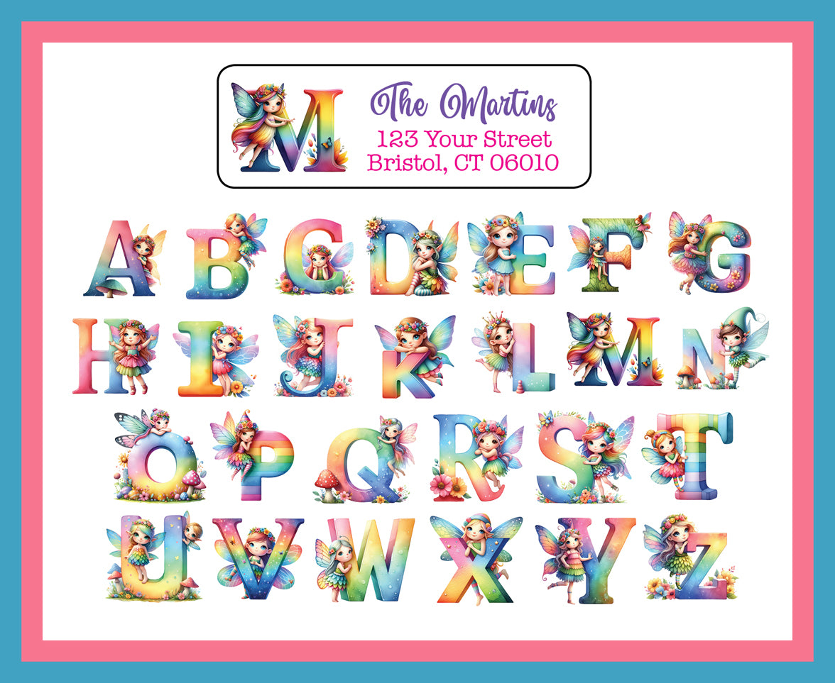 Personalized Rainbow Fairy Monogram Initial Address Labels, Return Address Labels, 30 per sheet