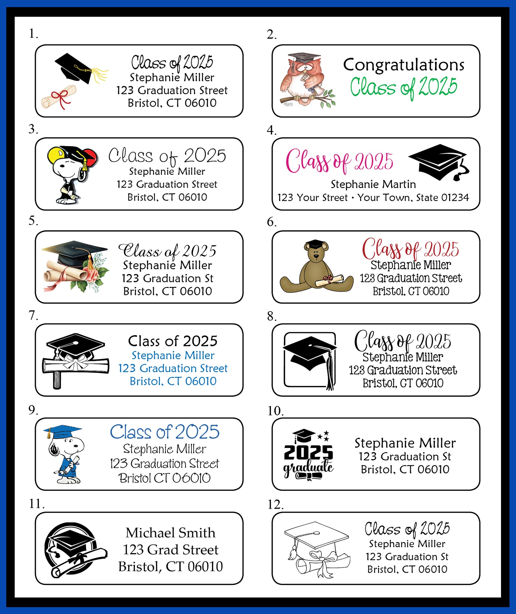 Class of 2025 Personalized GRADUATION Return Address Labels or Party Favor Labels