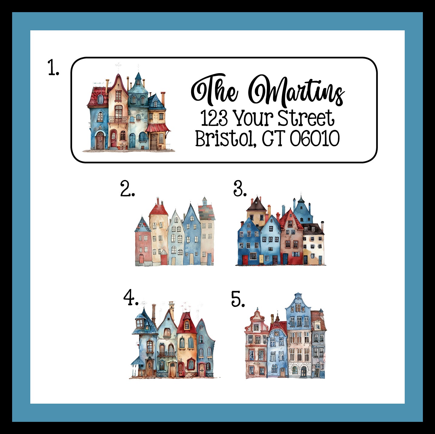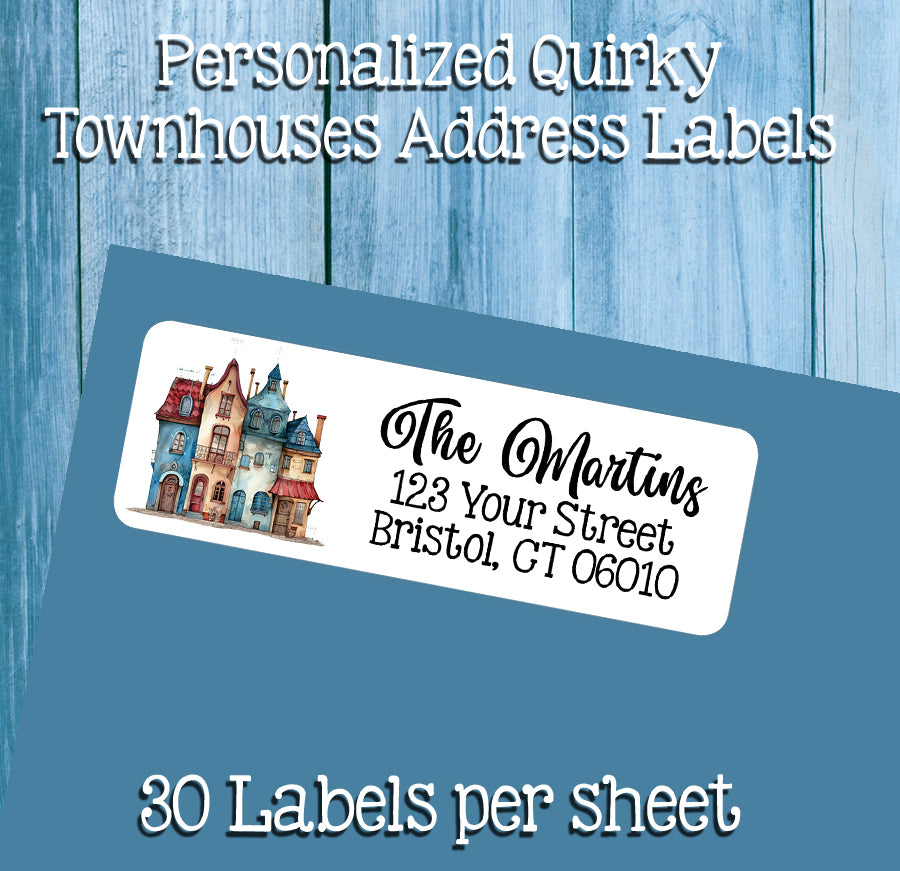 Quirky Townhouses Personalized Return Address Labels, Townhouse