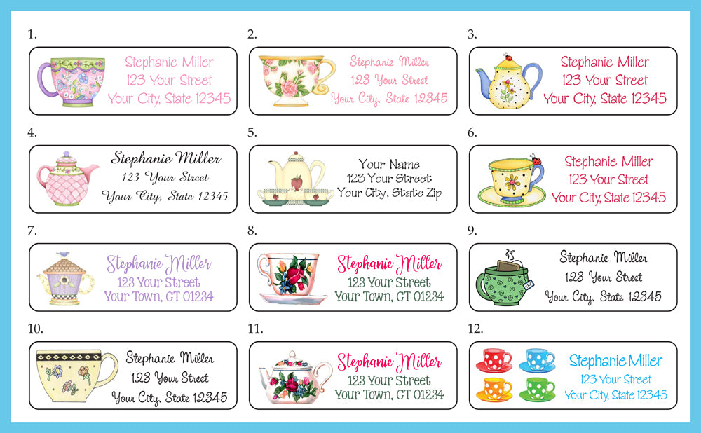 Sets of 30 per page Personalized TEA CUPS Address Labels!