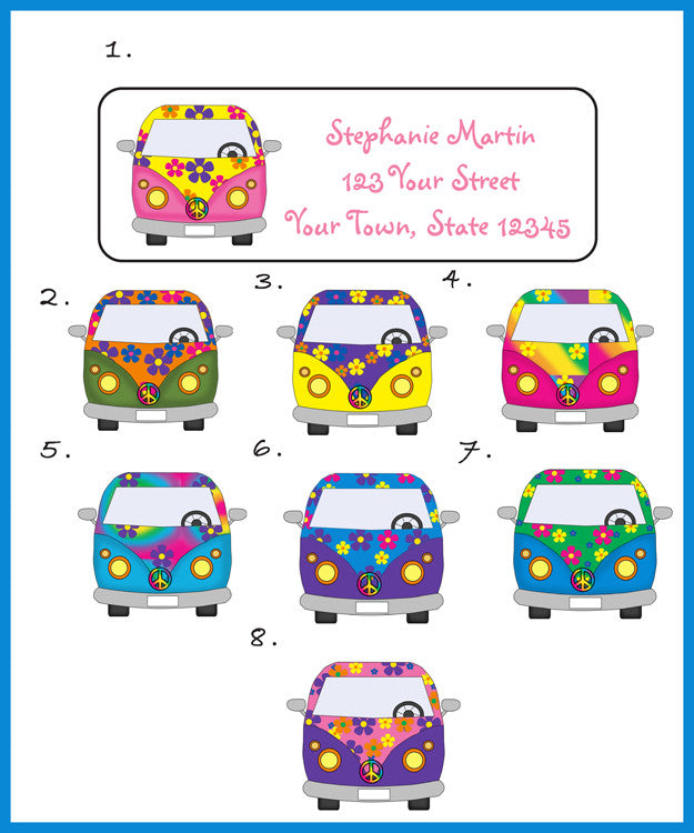 Personalized VW Bus, VW Flowered Buses Return Address Labels