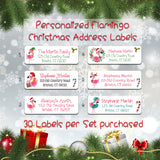 CHRISTMAS FLAMINGOS Theme Address Labels, Return Address Labels, Sets of 30, Personalized, tropical